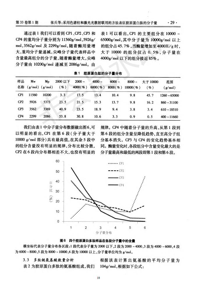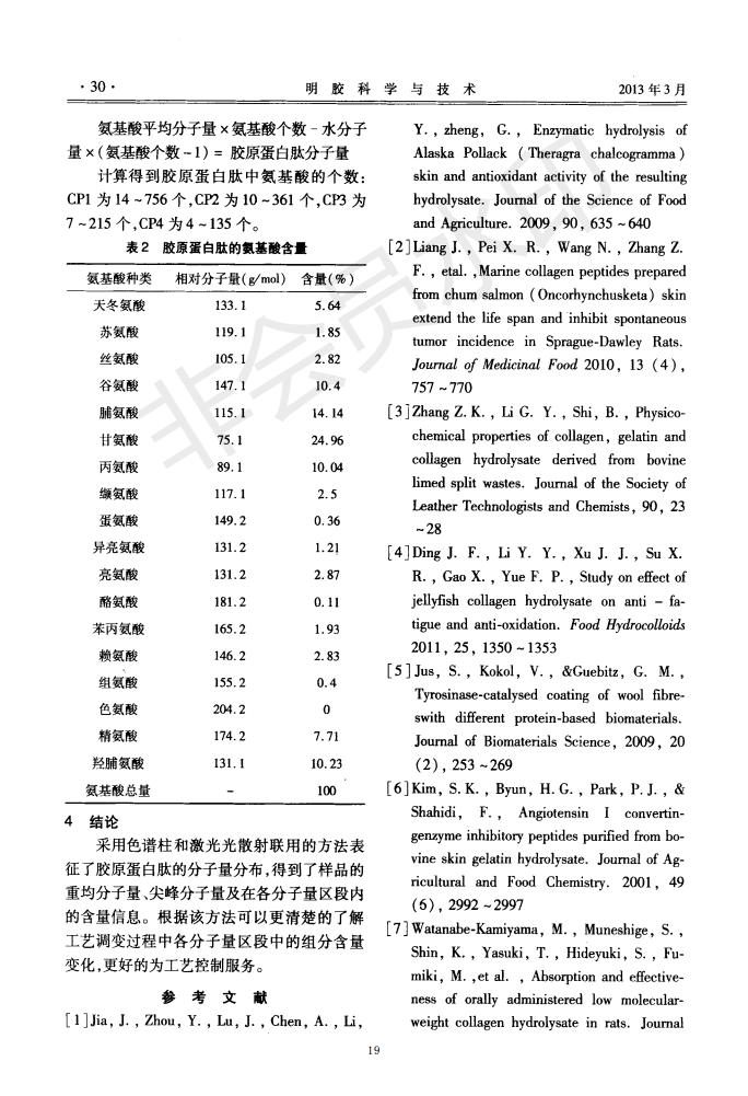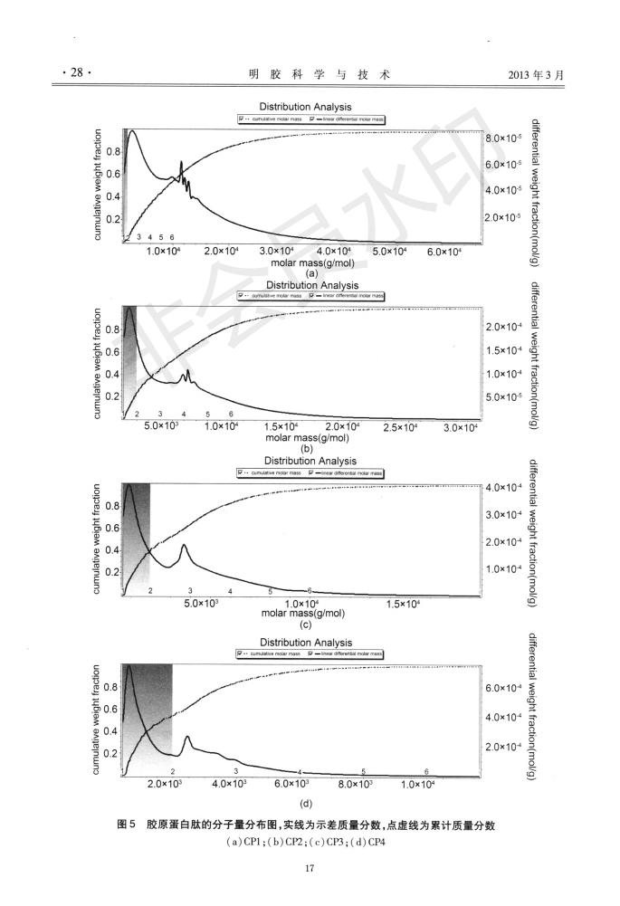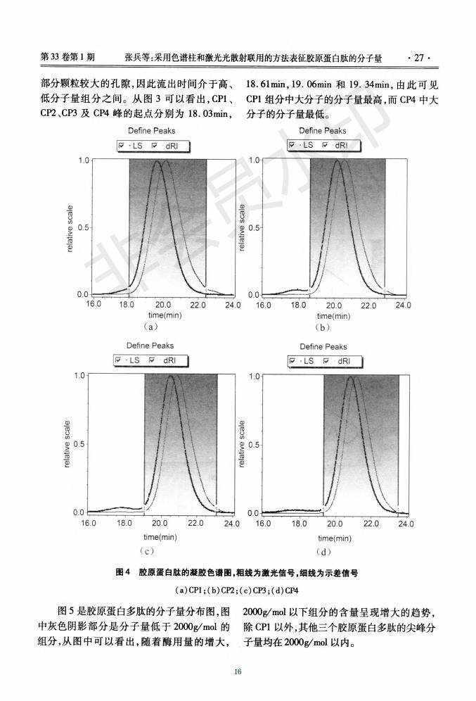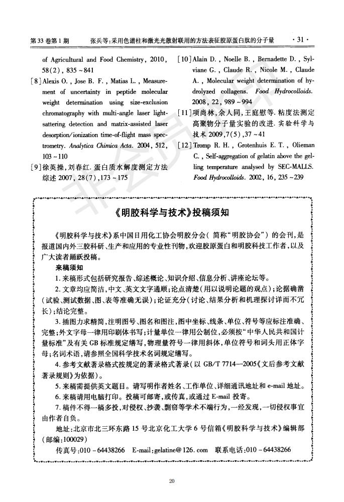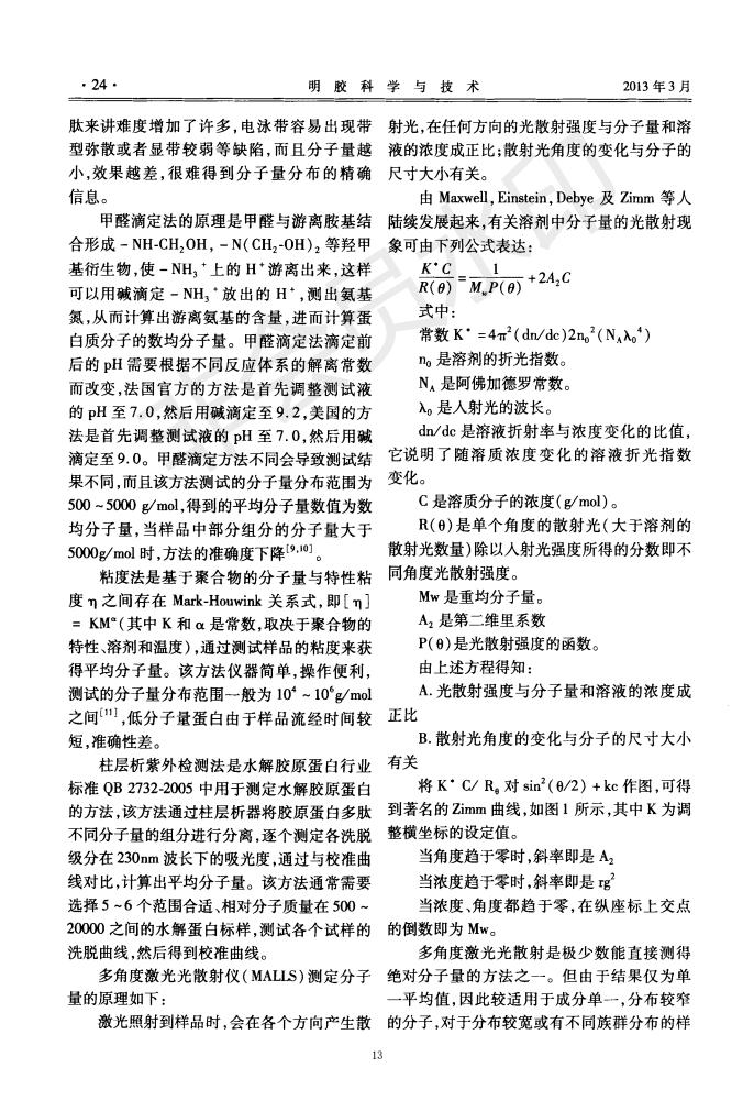 Chromatographic column and laser light scattering are used to characterize the molecular weight of c