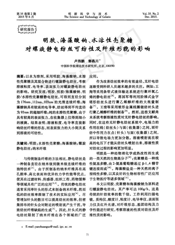 The influence of gelatin, sodium alginate and water-soluble chitosan on spinnability and fiber morph