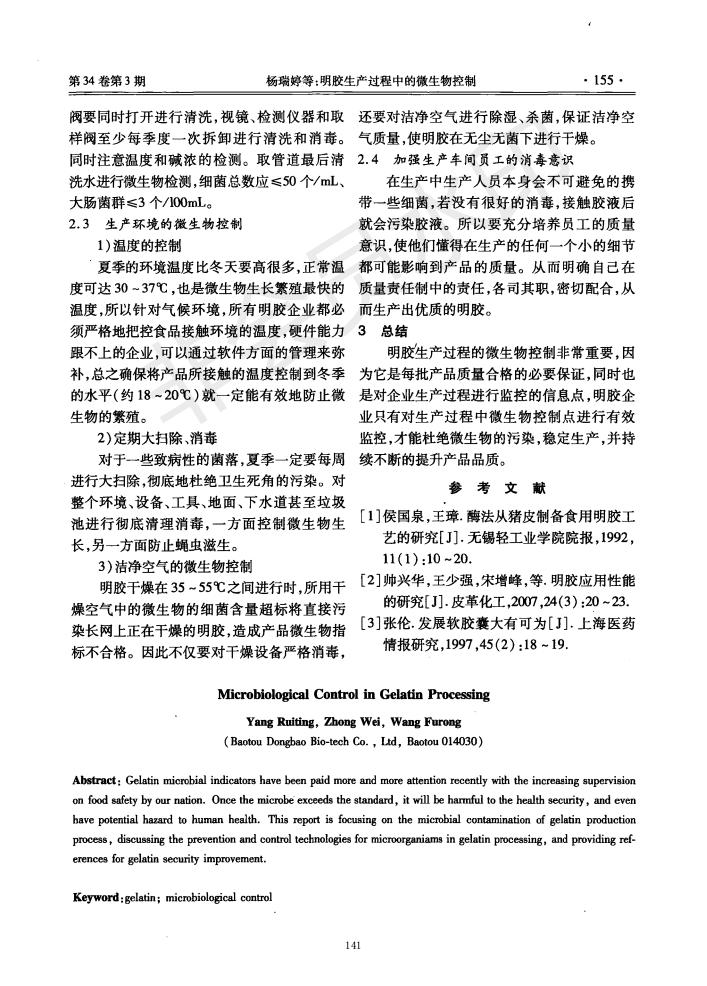 Microbial control in the production of gelatin