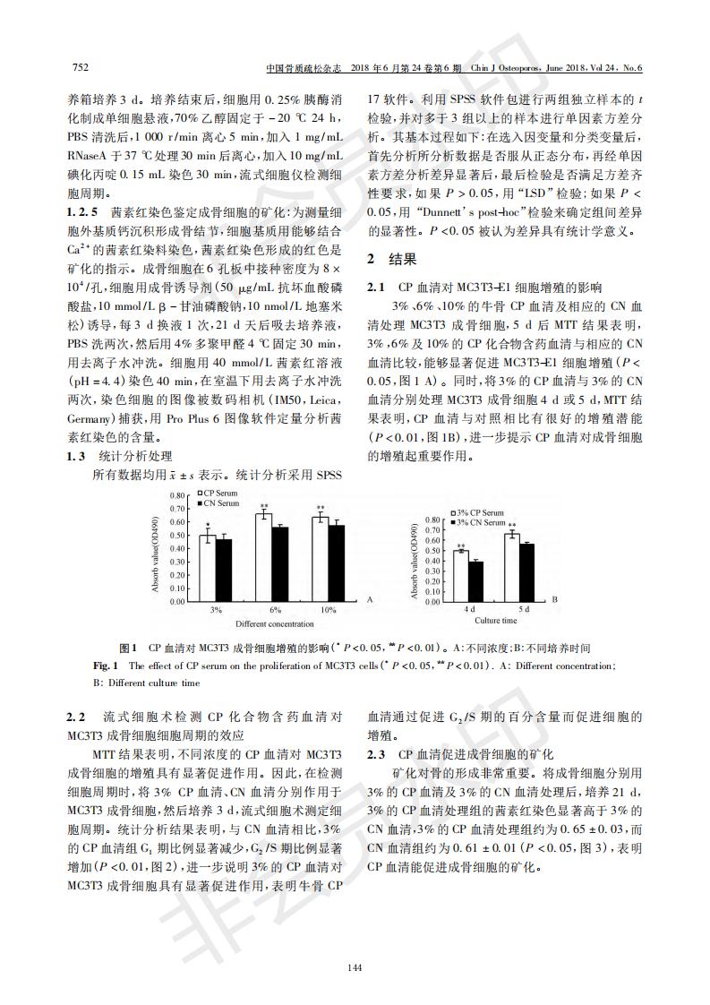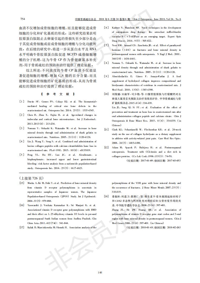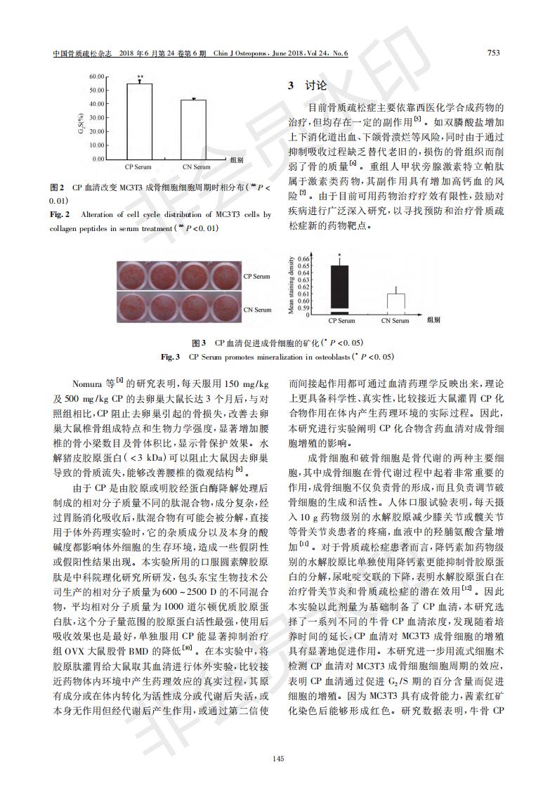 Collagen peptide-containing serum promotes the proliferation and differentiation of osteoblasts