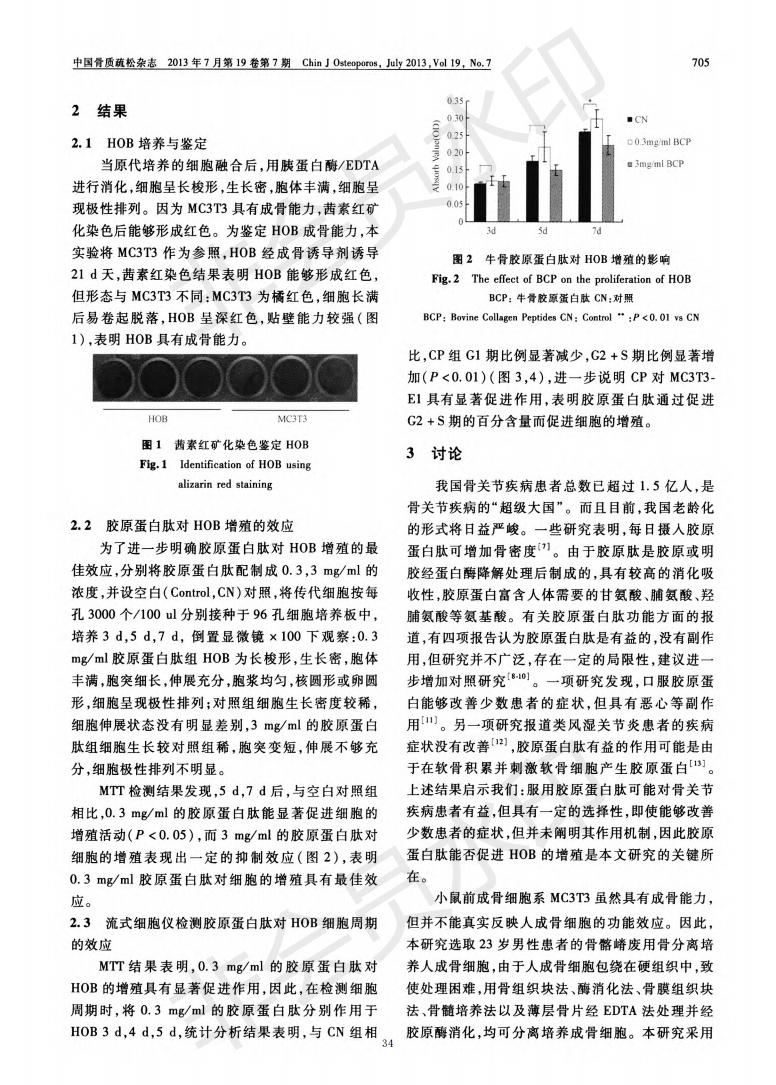 牛骨胶原卵白肽增进HOB增殖
