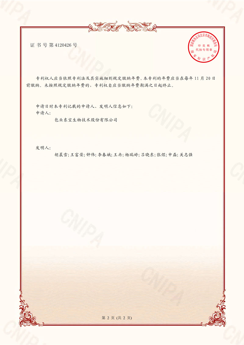 明胶重金属检测发明专利证书
